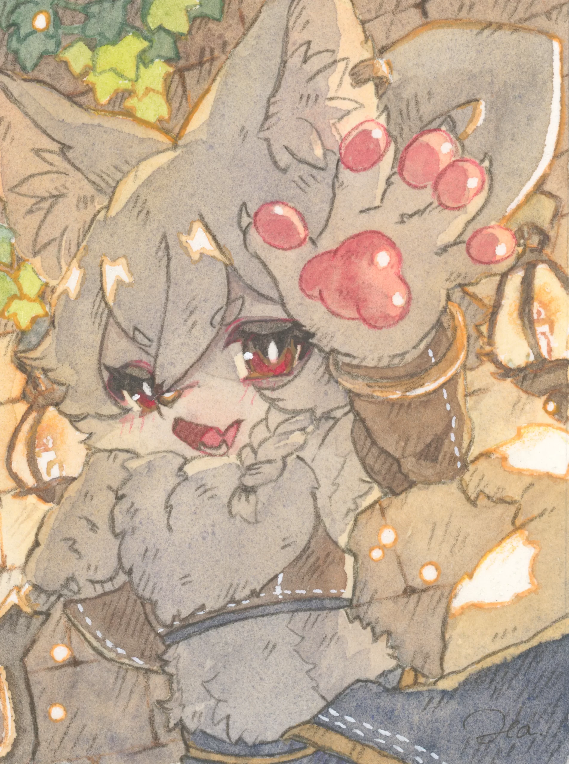 はらわかさん主催の「夏のミニ原画まつり」で描いて頂いたアサギ。ぷにっとした肉球が可愛すぎる!!