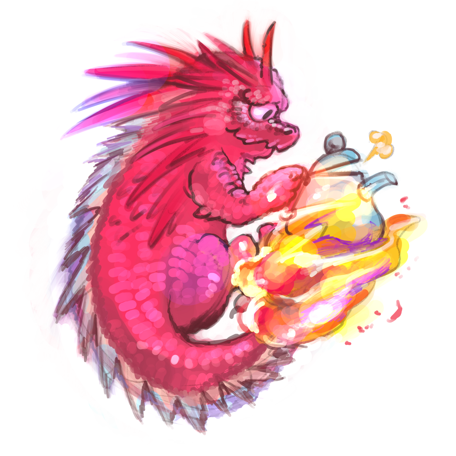 「笑うヤカン」そのもののアイコンとして依頼し描いて貰った、ヤカンを沸かす火蜥蜴。これで私もワクワクアニマルランド入り。
