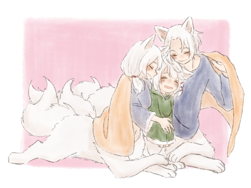 幸せそうに緩んだルカ、そして両親の幸せそうな表情よ……! 腕で抱きかかえながら、前足を絡めてるのが本当にしあわせな光景過ぎて、見てるだけでこちらの頬も無限に緩んでいきます。精一杯弟妹の面倒を見てきたおねえちゃんの、ねぎらいの時間……最高すぎる4枚目でした。