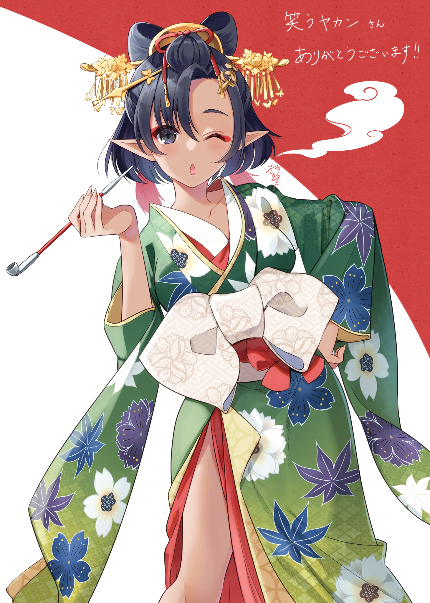 煙管と煙がやたらに似合う、ベティの花魁風衣装です。