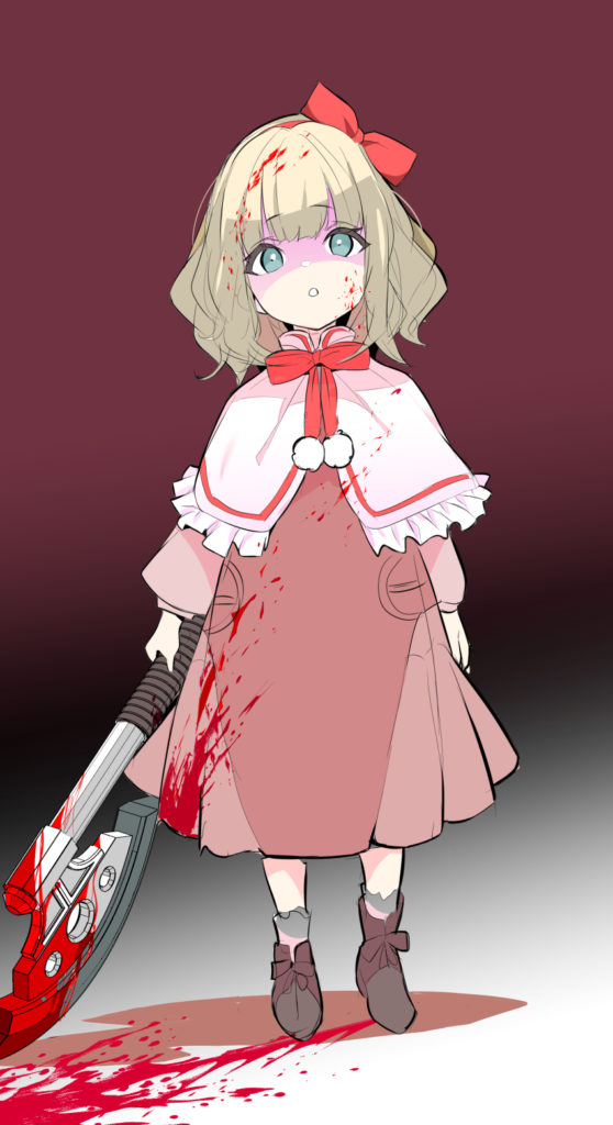 前の画像 次の画像 キラーマリーちゃん 誕生日のマリーちゃんイラコンに描いて頂いたイラスト。 血にまみれ大きな斧を手にしたマリーちゃん。バイオレンスかつホラーテイストなマリーちゃんは凄く新鮮でした。幼女にデカい武器はよく映える。