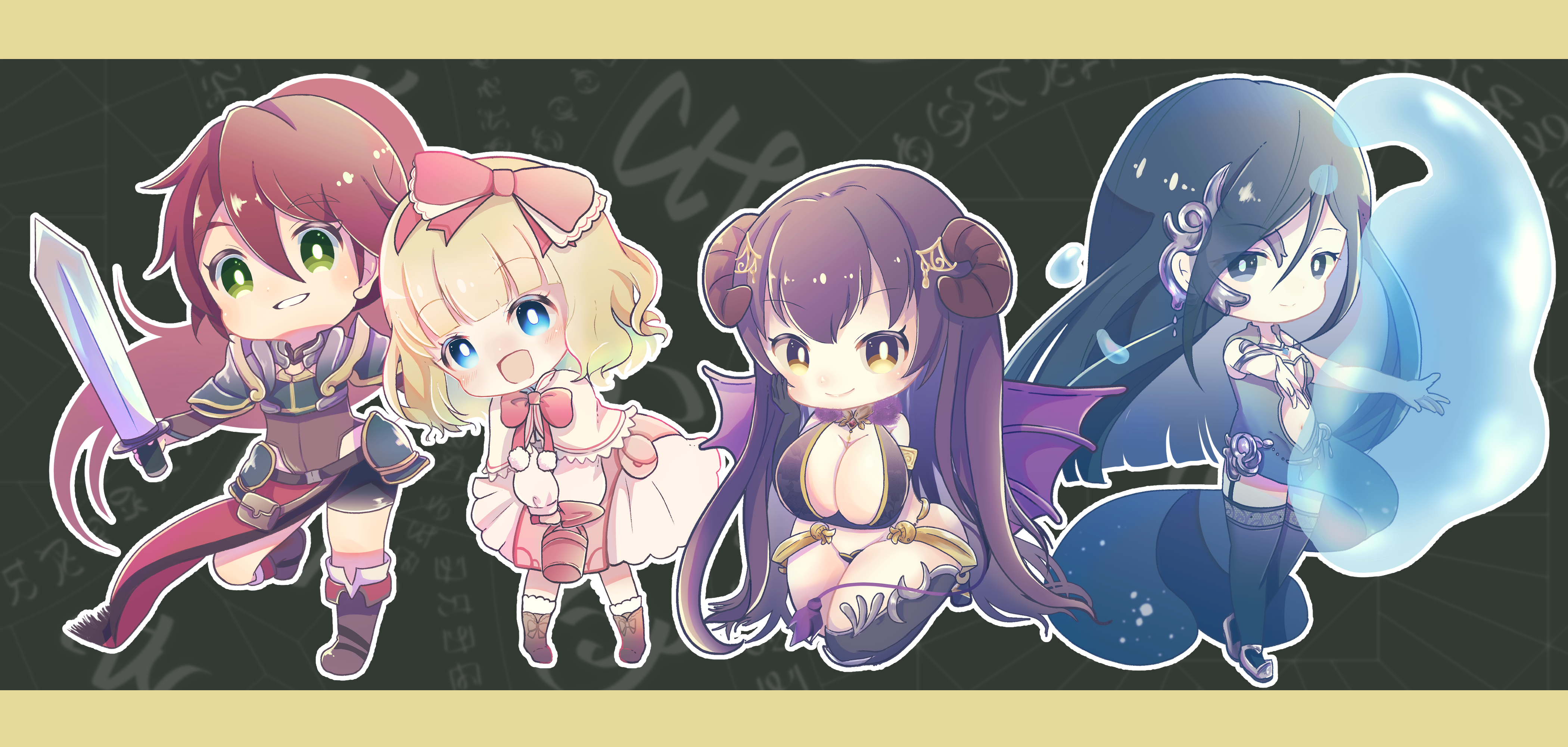 前の画像 次の画像 まおはじひろいんず ディフォルメで描いて頂いたまおはじメインヒロイン4人衆。 実際にはそれぞれ別の依頼で描いて貰ったイラストをオマケで一枚に纏めてもらったもの。かわいいが勢ぞろい! 一枚ごとのイラストはこちら。
