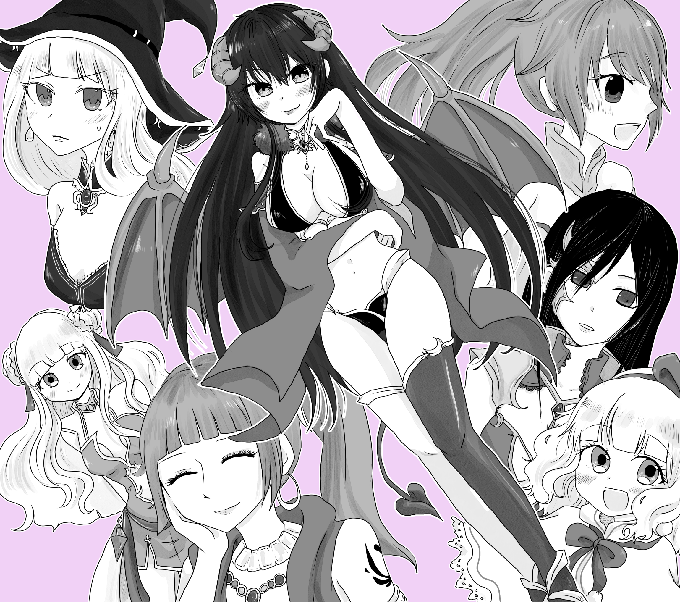キャラがいっぱい並んでる構図をとまと先生が描いてらっしゃったので、うちのこでもお願いします! とSkebでお願いしたら出てきたのがこちら。すごく多く描いて下さってびっくりしました。モノクロとはいえ2~3キャラくらいなもんだと……好きな子描いて下さい方式は、どの子を好きなのかもわかるという所が大変いいですね。その分負担をおかけしてしまうので相手は選ぶ必要がありますが。マリーちゃんが大小いるの嬉しい。