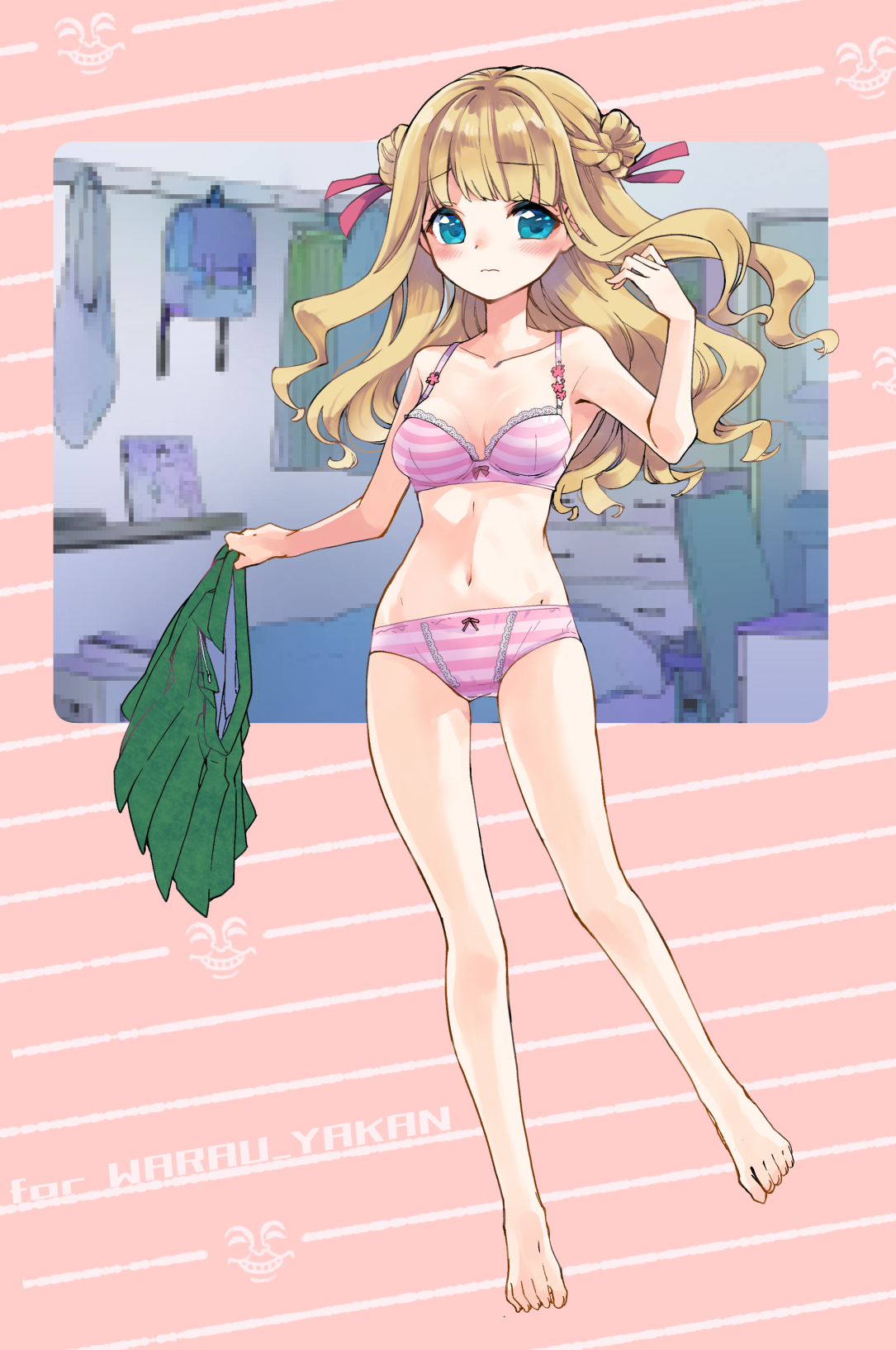 前の画像 次の画像 高校生マリーちゃん私服バージョン 前回描いてもらったギャルゲ風制服大人マリーちゃんにオマケで私服バージョンのラフがついてたんですが、それがあまりに可愛かったので改めて依頼を出し描いてもらったイラスト。 キャスケット帽がとても似合っててキュートです。 表情差分も。 そしてこちらは、秘密の下着差分です。一応ぼかし。