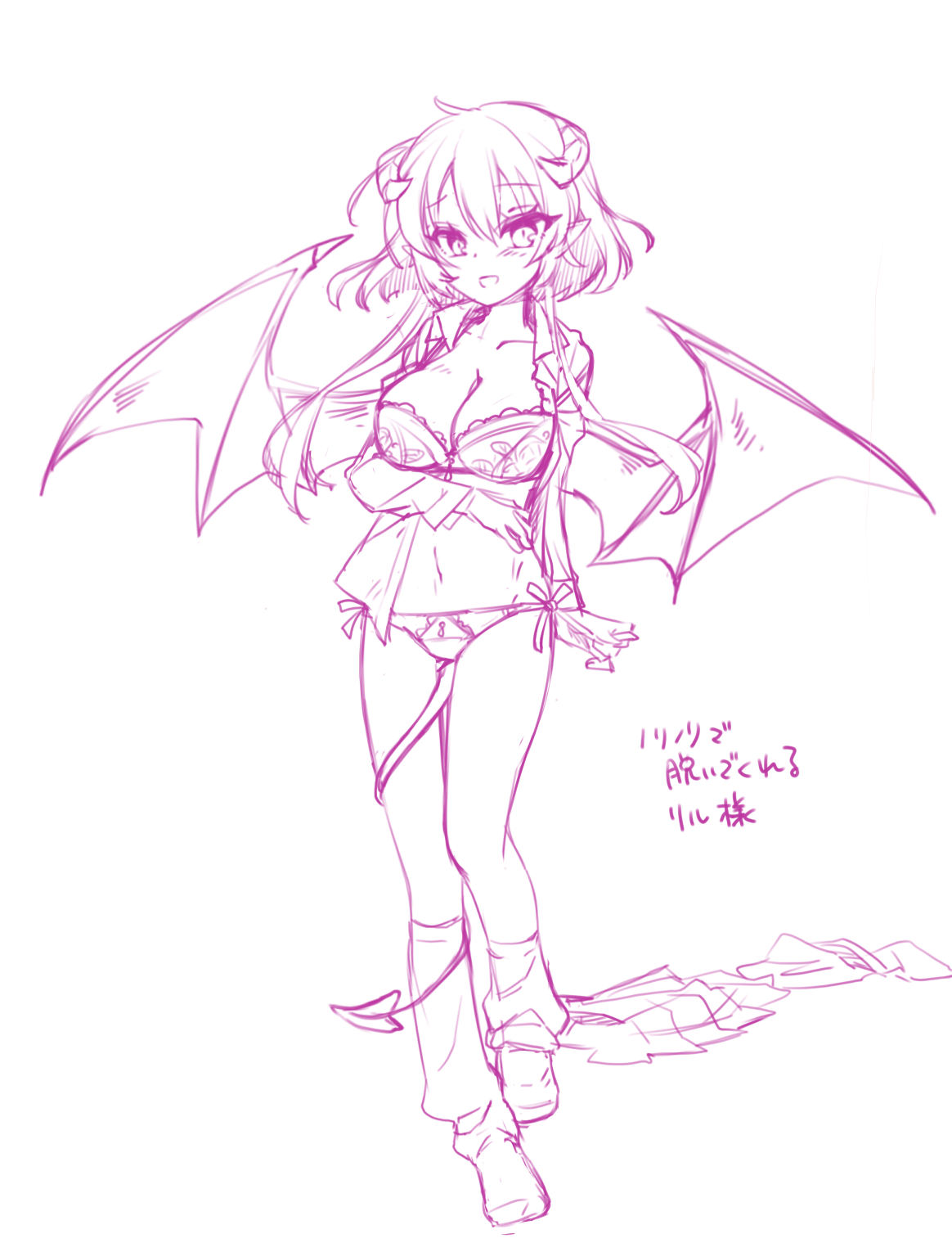 前の画像 次の画像 高校生リル ギャルゲ風制服シリーズ。黄色いリボンは三年生。 リルの制服姿、かつボブカットという斬新なアレンジですが、もともとこんなデザインだった気がしてくるほどばっちり似合ってます。大胆に開けられた胸元がサキュバスすぎる。 こちらは本格的にサキュバスモードのリル先輩。 と、ノリノリで脱いでくれるリル様。(若干センシティブなので一応ぼかし)