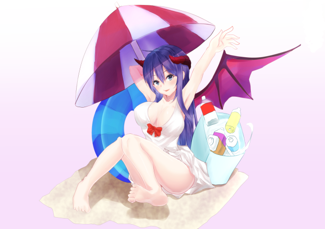ビーチで開放的になっているリル。普段より露出度が下がっているのはご愛嬌。