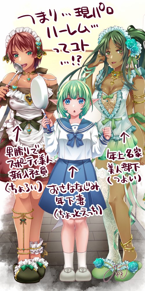 前の画像 次の画像 裸エプシャル まおはじ女子裸エプロンシリーズ第八段、シャル。 今回でようやく、裸エプロンシリーズが毎回同じサイズでイラストが描かれており、全員の縮尺が揃っているのでそのまま身長が比較できることに気づきました。遅い。 今回は差分の量が物凄く、全パターンを紹介すると数十万通りとかになるので割愛。 こちらは私のおすすめの制服幼妻ポニテテレ顔マシマシのシャルです。 更に今回は完全にエプロンをパージして全裸になる差分も……! ナジャ、エレンと並んだ身長比較の図。シャルちっちゃい……!(残りの二人が大きいのもある)