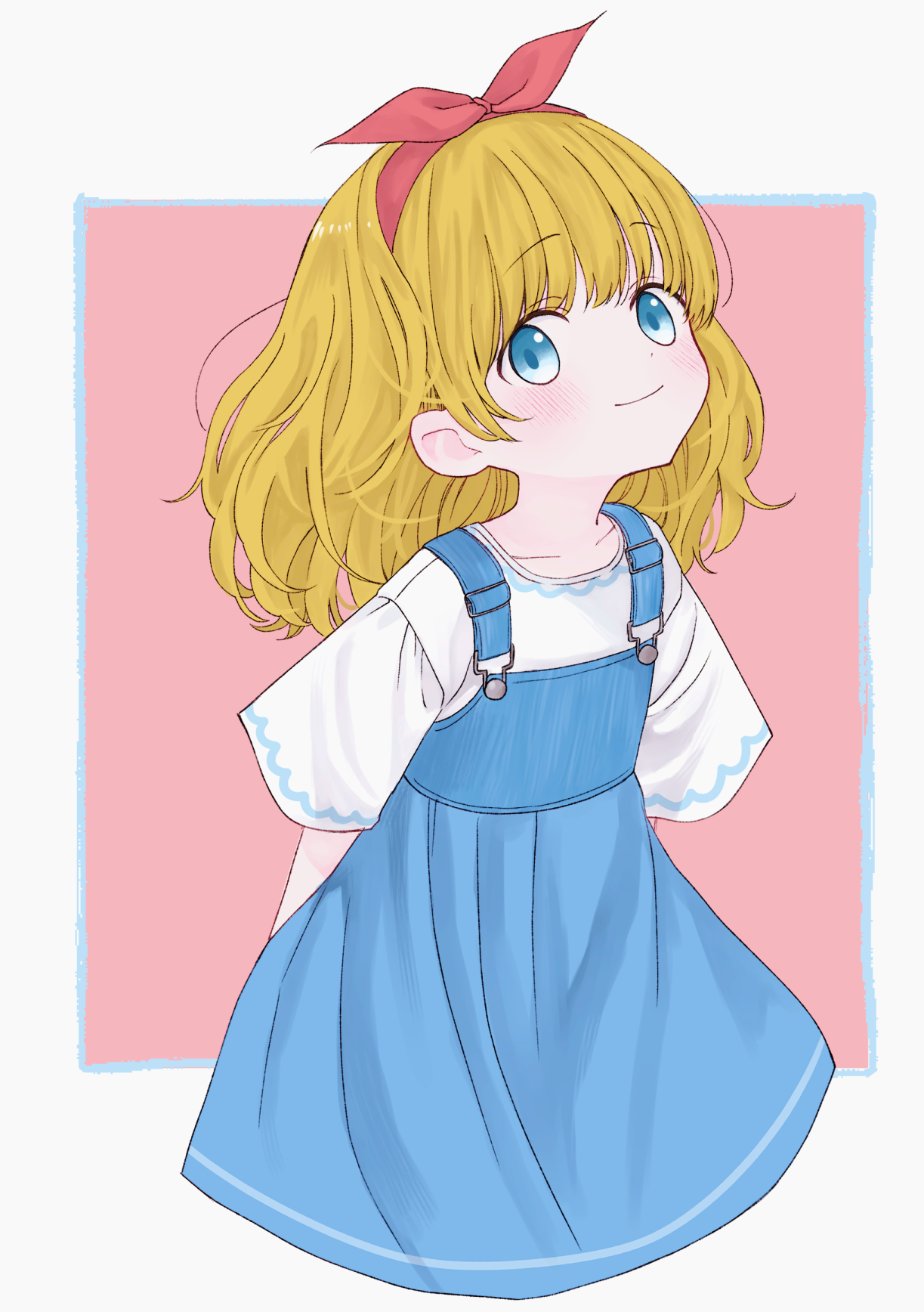 Skebでお願いした現代服マリーちゃん。爽やかなサロペットスカートが素敵。さらさらの金髪と子供らしい仕草の顔の傾き具合があまりにも美少女。