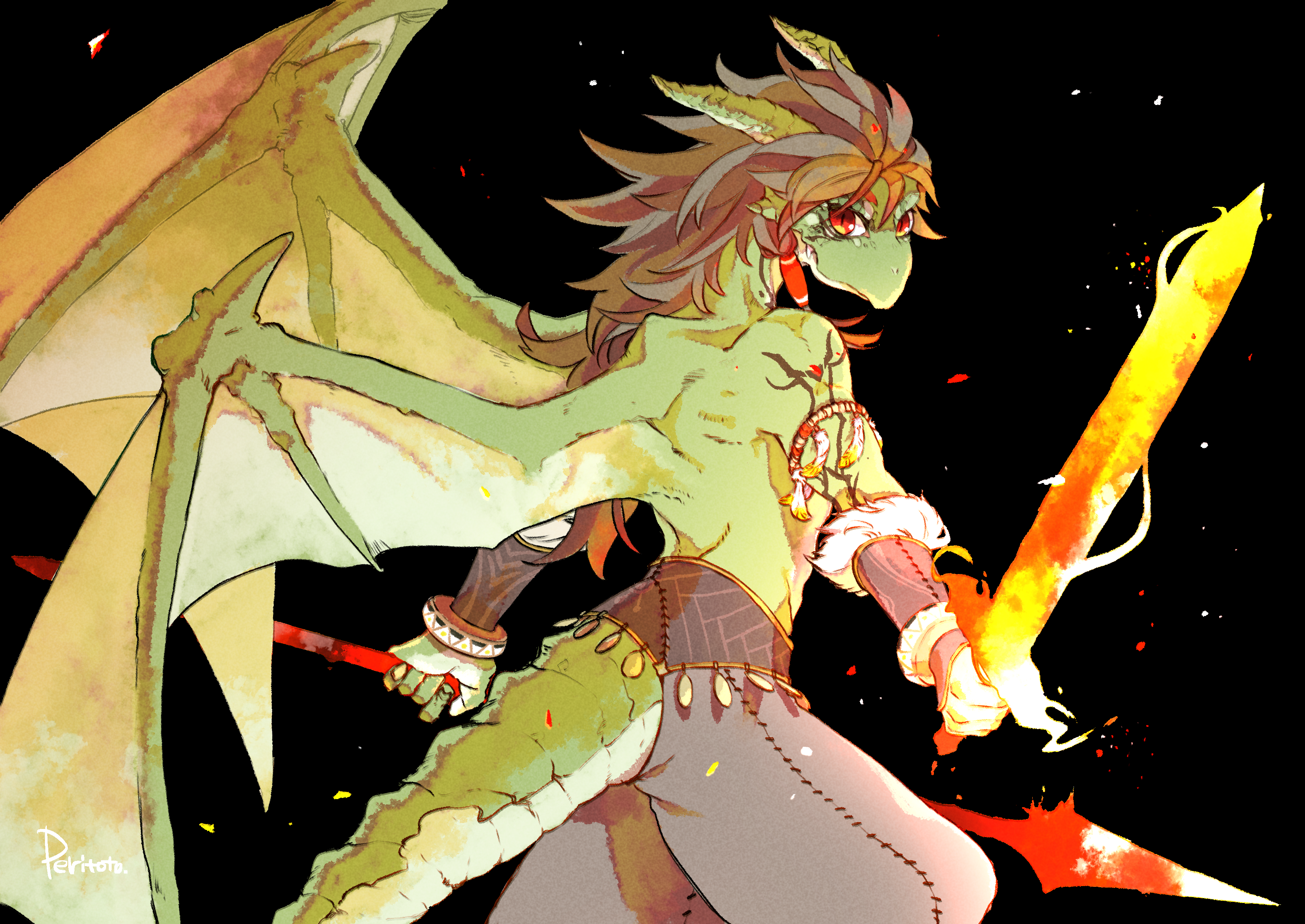 炎の剣を構えるシグ。衣装や姿かたちなど、独自解釈部分が強くてすごく好き! オリジナルのデザインから離れると嬉しい人と好きじゃない人といると思うけど私は割と前者です。あと純粋にかっこよくて素晴らしい。好き。