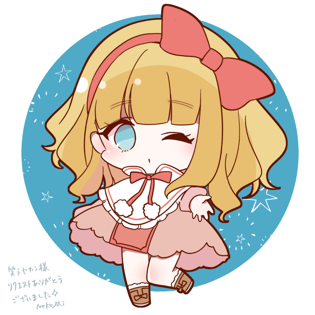Skebで描いて頂いたミニキャラマリーちゃん。アイコンとして使い勝手がめちゃくちゃ良さそうな愛らしさ。