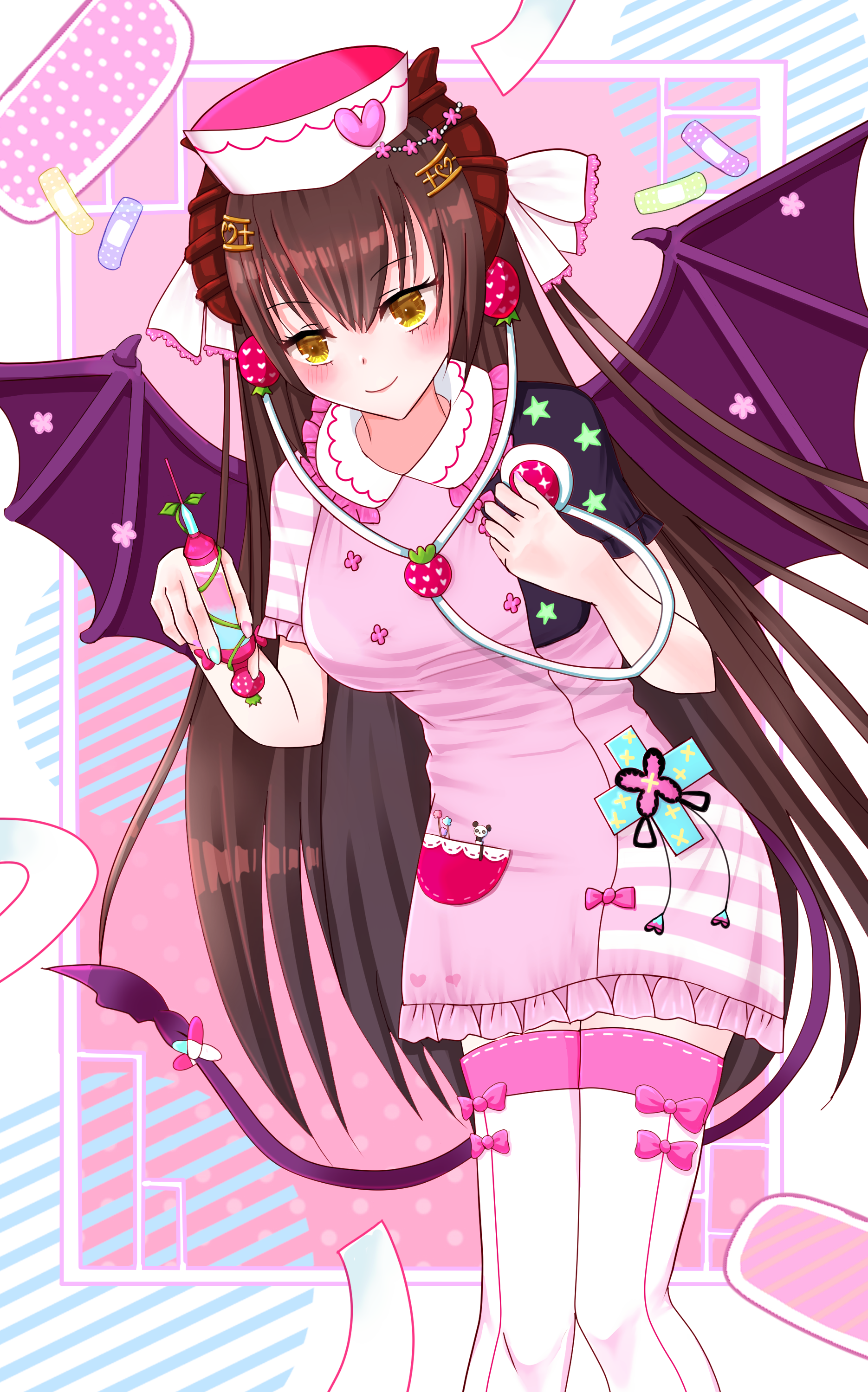 前の画像 次の画像 ナースリル ナースリルか水着ザナを描きたいとアピール頂いたので、即座に倍額払って両方描いていただいたものの片方。 女児用玩具っぽいパステルカラーの、イチゴやハートが乱れ飛んだデザインの衣装や道具が最高に可愛い。