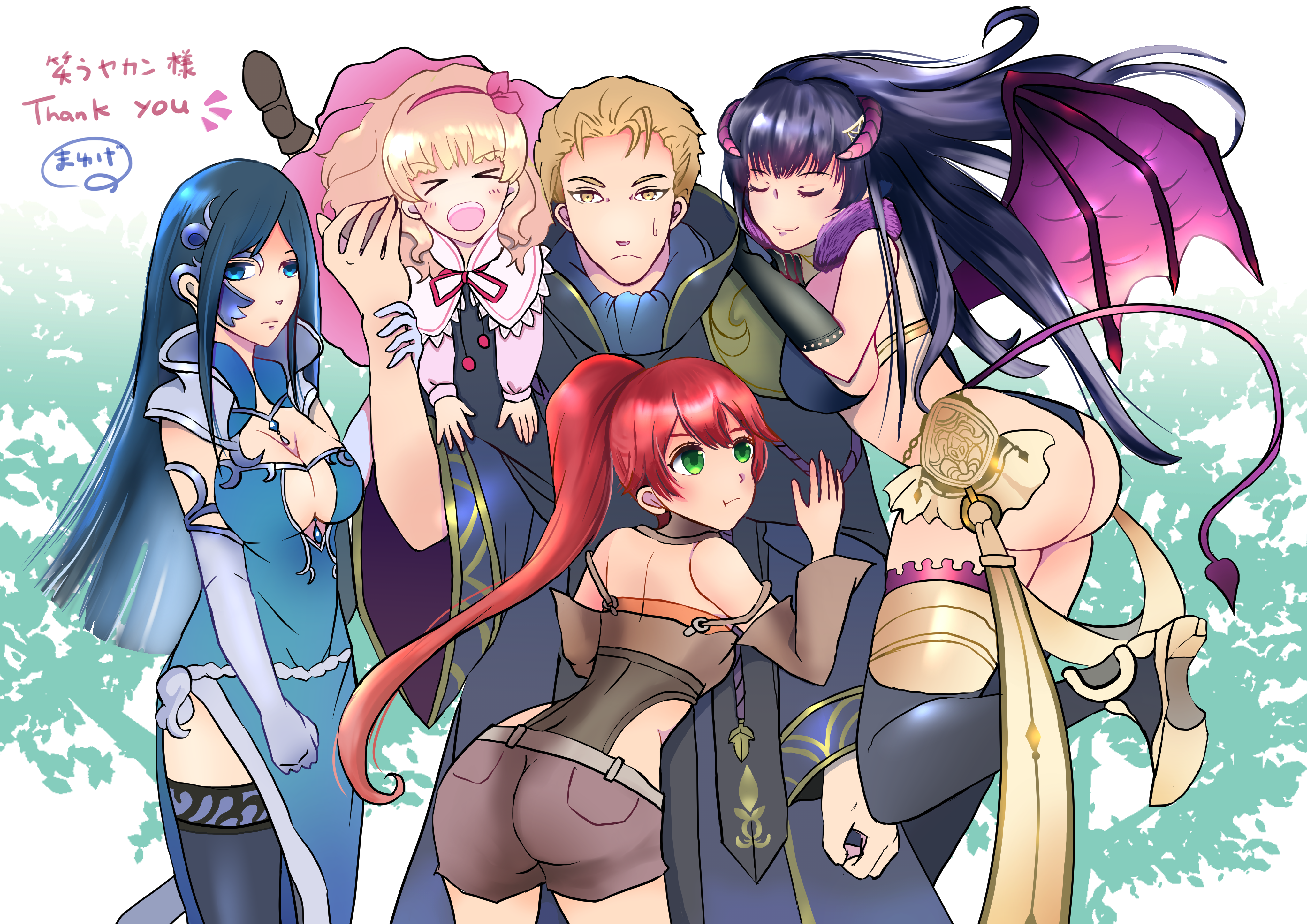 Skebで描いて頂いた絵。まおはじメインキャラ大集合。思い思いにオウルさんにくっつくヒロイン達の位置取りや表情が素晴らしい。