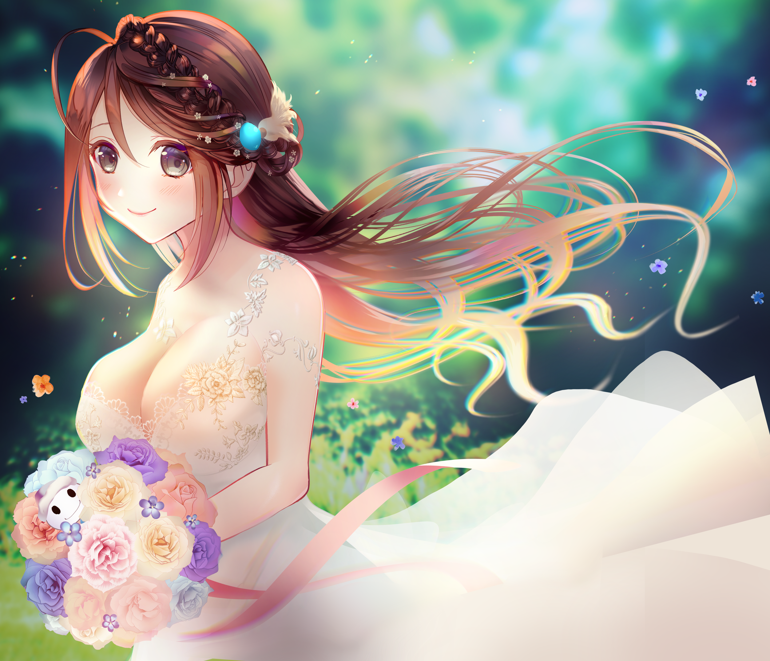 Skebでアピール頂き描いて貰った、欲しいFAリストNo.34「ニーナの作った月糸製ウェディングドレスに見を包んだアイ」