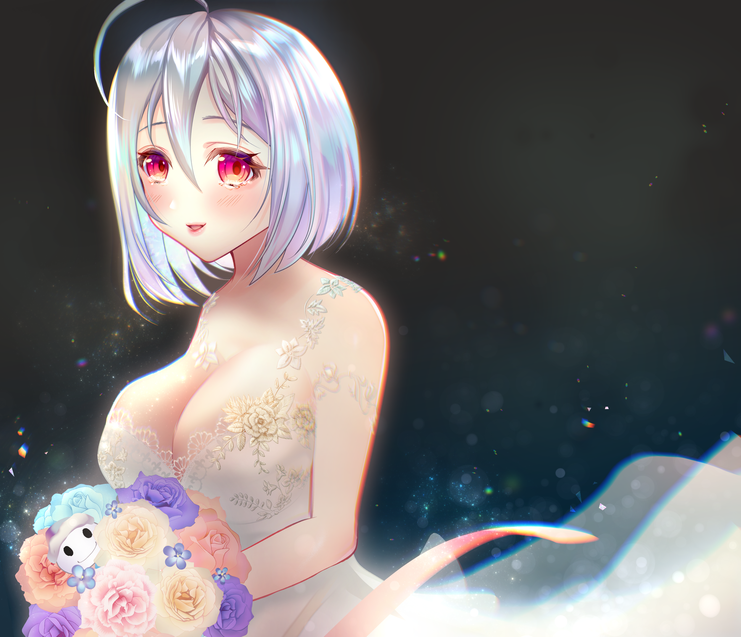 Skebでアピール頂き欲しいFAリストNo.34「ニーナの作った月糸製ウェディングドレスに見を包んだアイ」を描いてもらったらおまけで付いてきたもの。まさかの転生後。転生後アイは存在そのものがネタバレの塊である都合上なかなか描いて貰えないので本当に嬉しいです。
