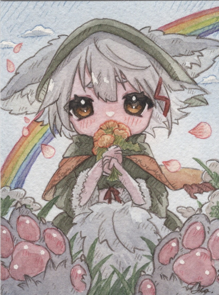 前の画像 次の画像 ルカ はらわかさん主催の「夏のミニ原画まつり」で描いて頂いたルカ。私が依頼したわけではなく、むぎさんが依頼して描いて貰ったものを送ってもらえました。魅惑の前足肉球&人の身体でぎゅっと握った花束がかわいい!