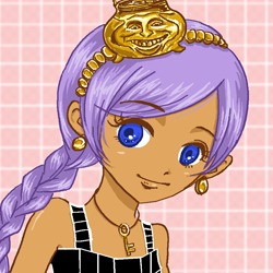 笑うヤカンを擬人化女体化したキャラクター。鍵のネックレスにワイヤーフレーム風の服、コインのイヤリング、そしてヤカン本体。紫髪と褐色肌はヤカンの趣味。