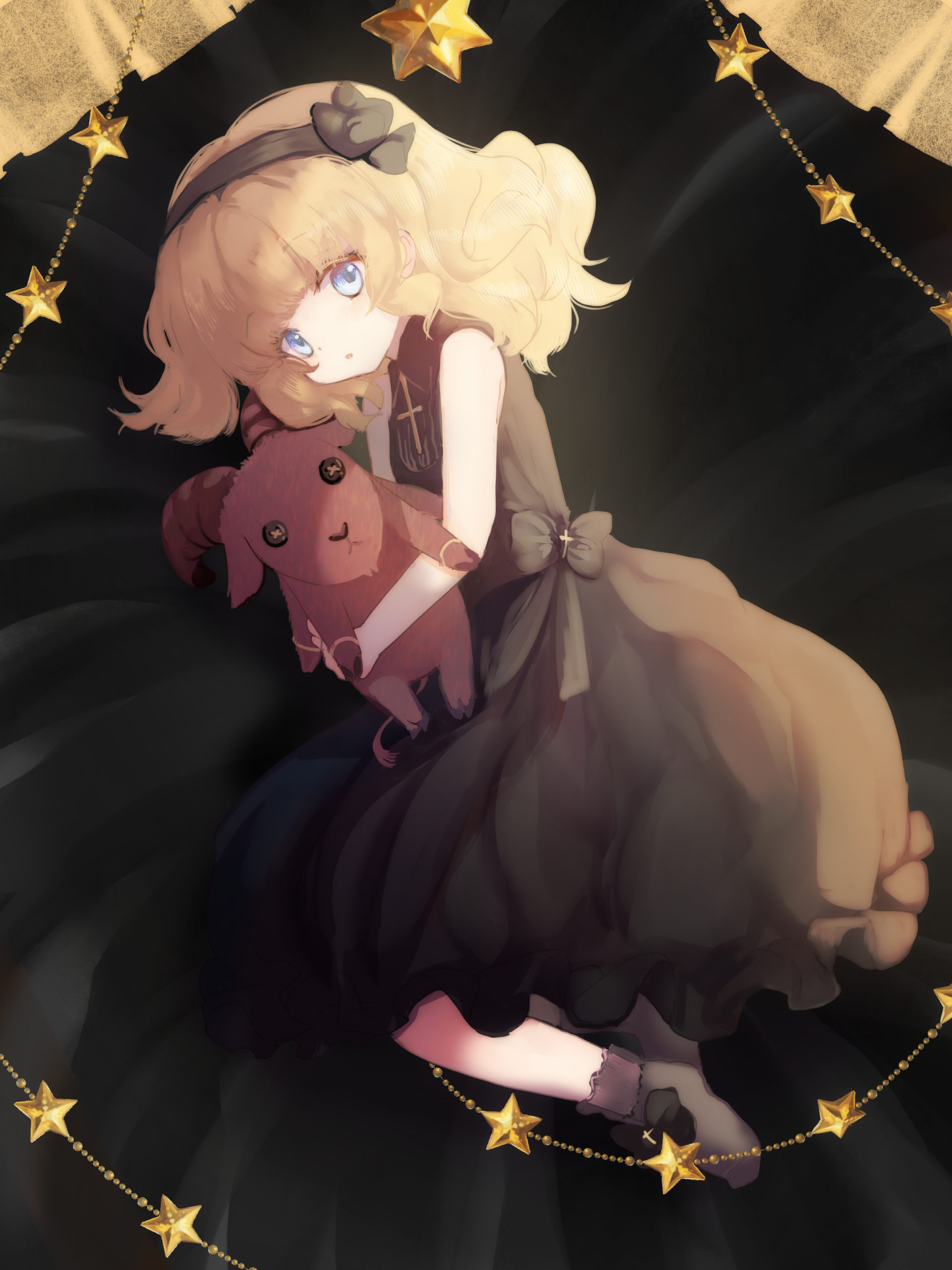 ふんわりピンク基調のいつもと違ってゴシックな雰囲気のドレスに身を包んでおめかししたマリーちゃん。少し大人っぽい雰囲気が素晴らしい。ローガンぬいの虚無の表情とちゃんと腕が四本あるところが好きです。