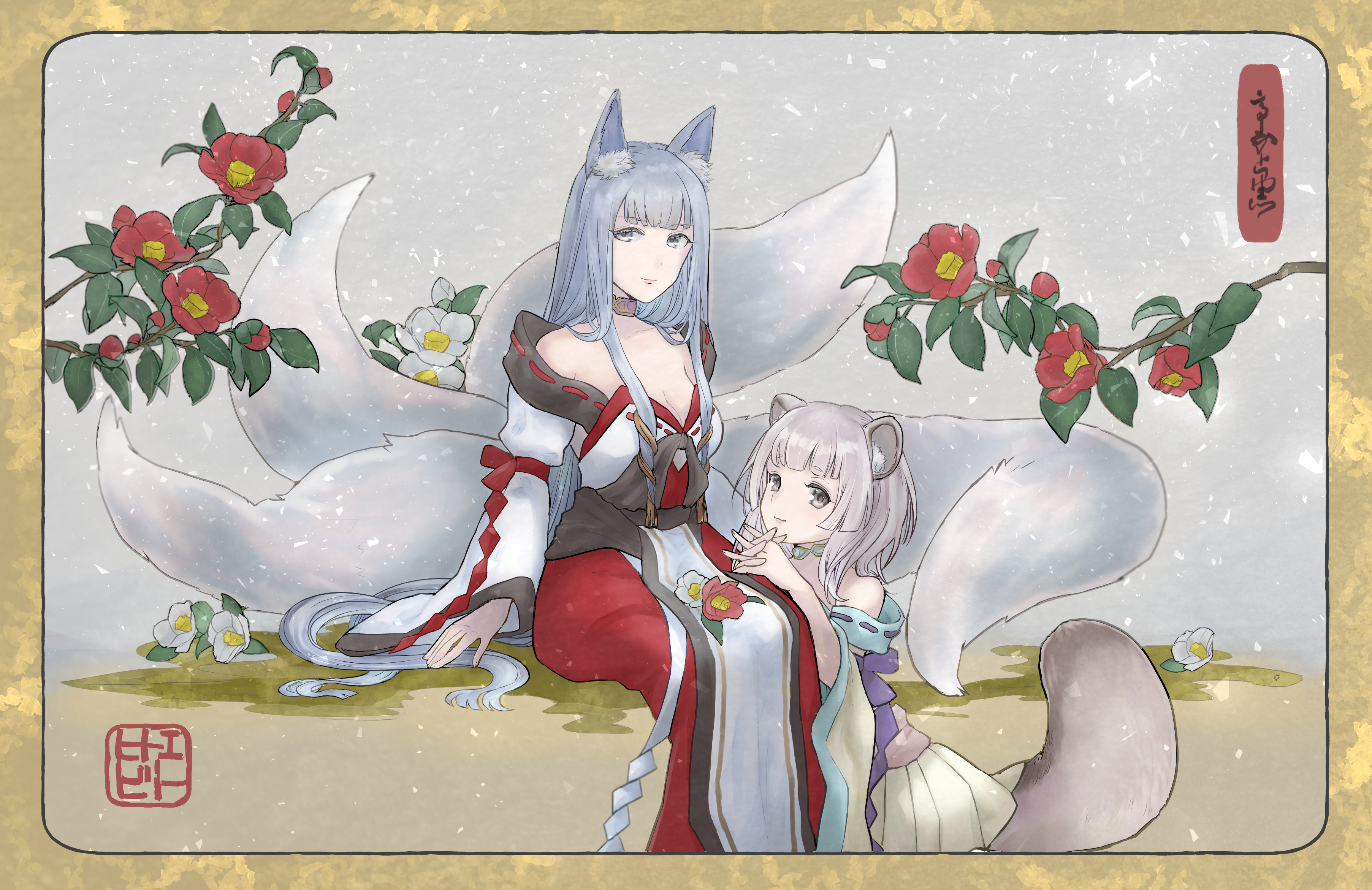 狐狸の精をその身に降ろした祖母娘。美しさと可愛さのコラボレーション……! 日本画のような雰囲気がすごくすてき