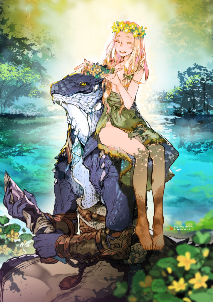 「大きなあなたと小さなわたし」の主人公、リザードマンのヒッサーと人間のタマル。二人は仲のいい兄妹。