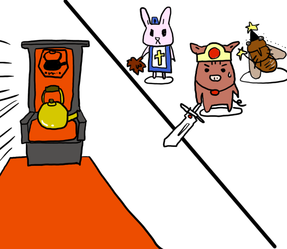前の画像 次の画像 魔王討伐 回復魔法を使わない僧侶久保田、何もしなくてもスリップダメージを受けていく魔法使い蝉川を仲間に、勇者うりぼうは魔王ヤカンを倒すことが出来るのか。 うりぼうの勇気が世界を救うと信じて──!