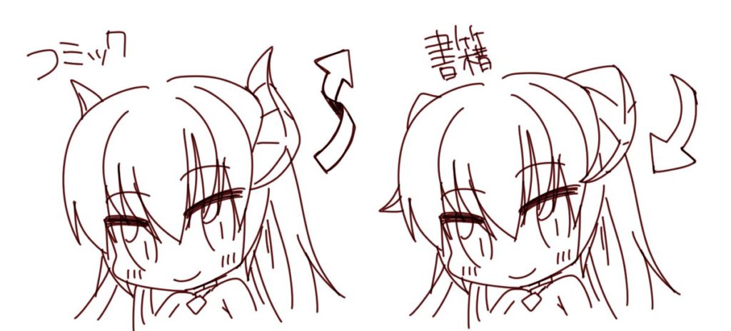 書籍版とコミカライズ版のリルの角の生え方の違い。