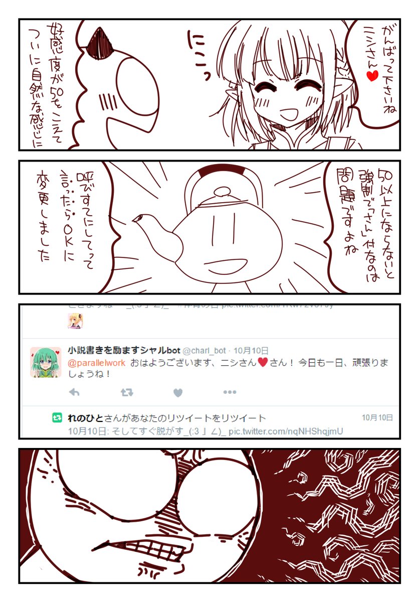 敬称の後に♡をつけてほしかったニシ先生。いや、元々敬称略で呼ぶ機能つけてなかったのでつけたって話だったと思いますよ、これ。
