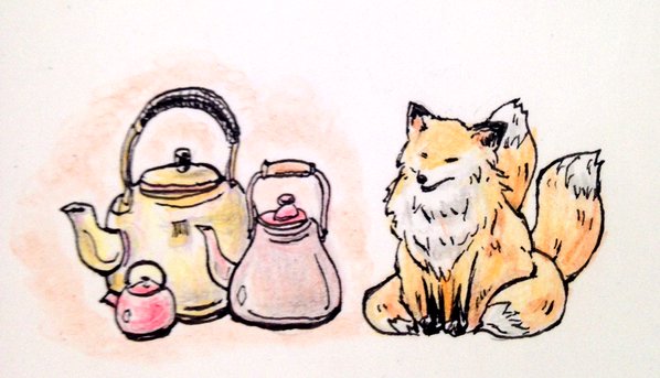 ヤカン一家を描いてくれました。嫁ヤカンと娘ヤカン、かわいい