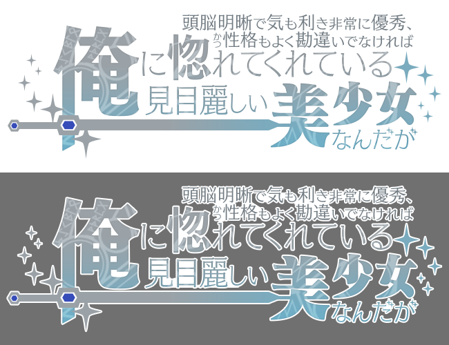 「頭脳明晰で気も利き非常に優秀、かつ性格もよく勘違いでなければ俺に惚れてくれている見目麗しい美少女なんだが」のタイトルロゴ。とにかく長いタイトルをつけてみたかった