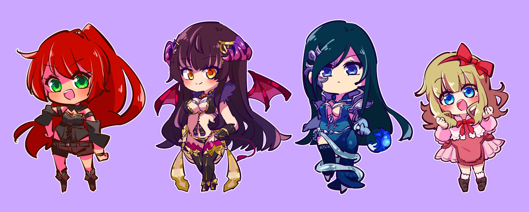 前の画像 次の画像 まおはじヒロインズ 以前描いてもらったユニスに、残りの三人を足してもらったもの。よく見るとユニスも陰とか細かく描き足してくださっている……! デフォルメながらポーズや表情がすごく細かく完成度高くて好き