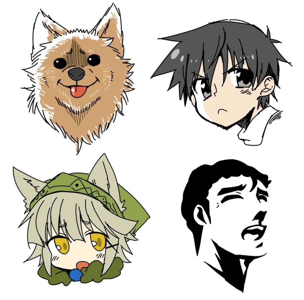 リプきた物を描く、みたいなタグで描いてもらったルカ(左下)。残りの三者は別の人達がリクエストしたもの。カオス。