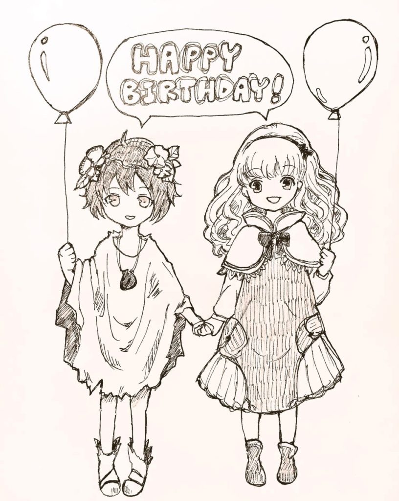 誕生日に頂いた幼少期のアイとマリーちゃんのイラスト。ただただ可愛い。