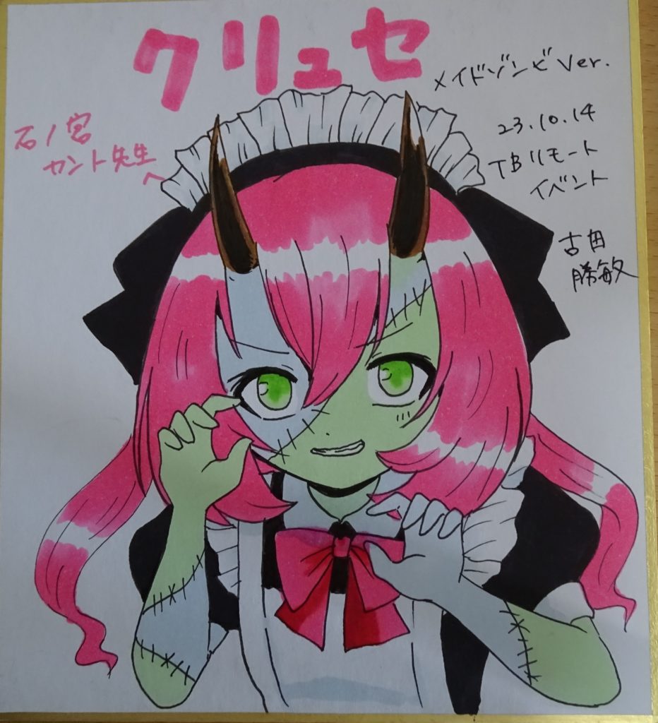 サブカルショップ「テクノブレイク中野店」さんのリモートイベントで描いて頂いた色紙。を依頼してくださったファンの方から送られたもの。
