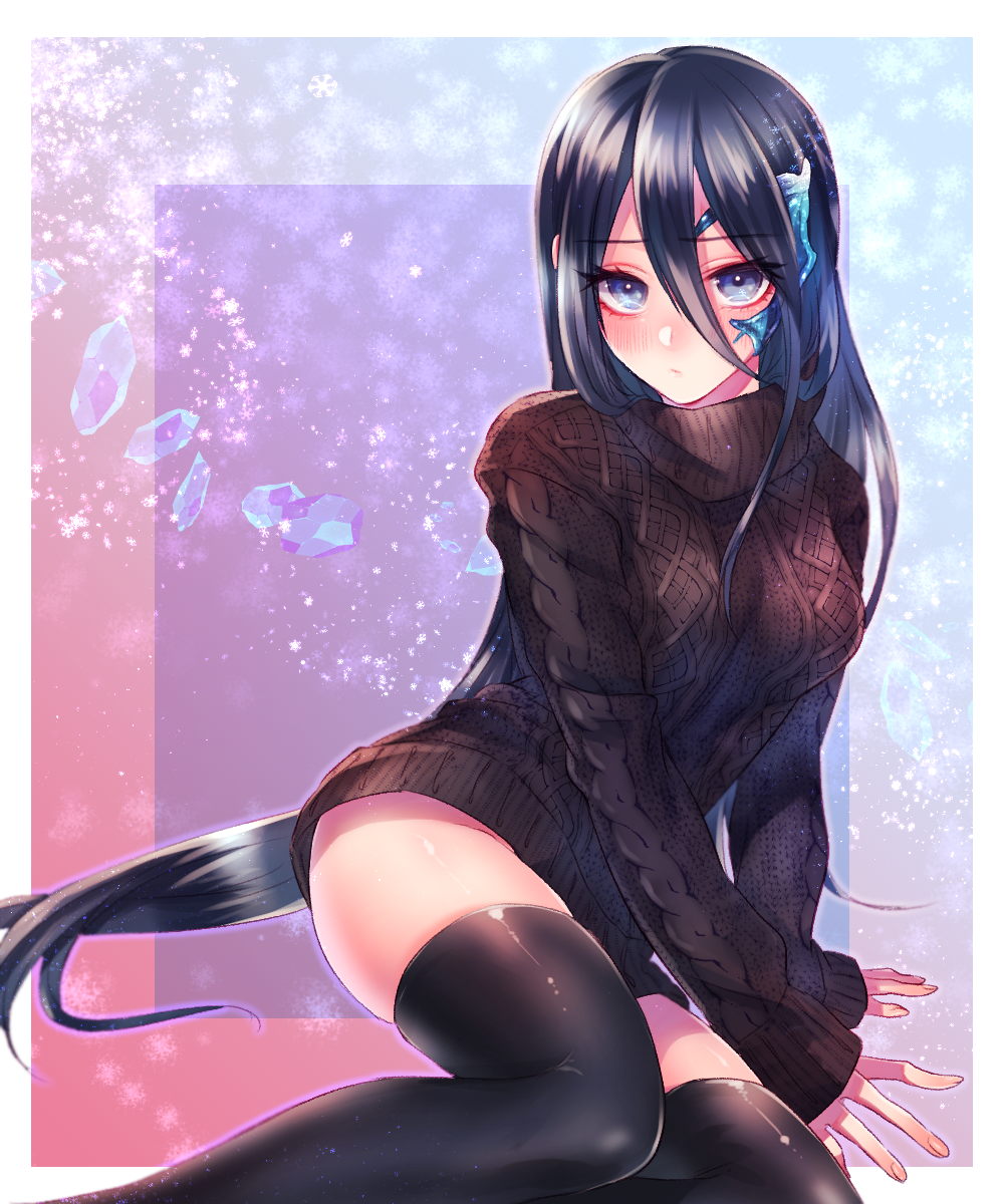ニットワンピ姿のスピナ。短い裾から覗く太ももと、ニーソの食い込みが素晴らしいです。