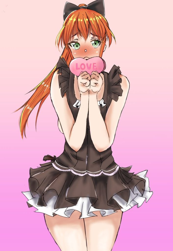 真っ赤になりつつ扇情的な衣装でチョコを渡すユニス。太ももが眩しい