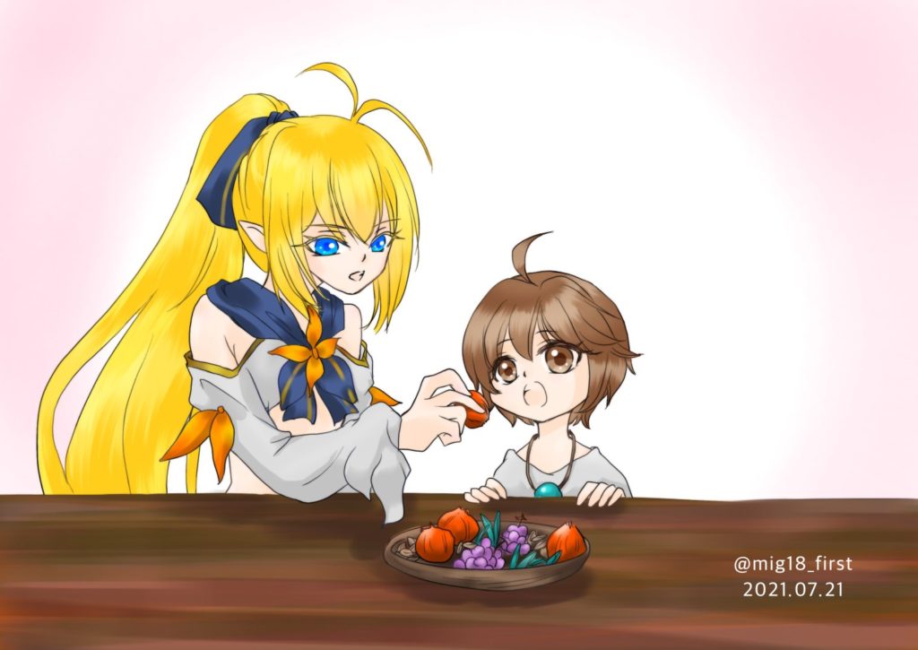前の画像 次の画像 竜歴10年のニーナ 2021年の誕生日に頂いた、欲しいFAリストNo.55「子供の頃のアイとニーナが食卓を囲んでいるところ」 2020年の誕生日に頂いたこちら(竜歴17年)と あーんするアイとニーナ 竜歴80年のこちらと連作。 竜歴80年のニーナ