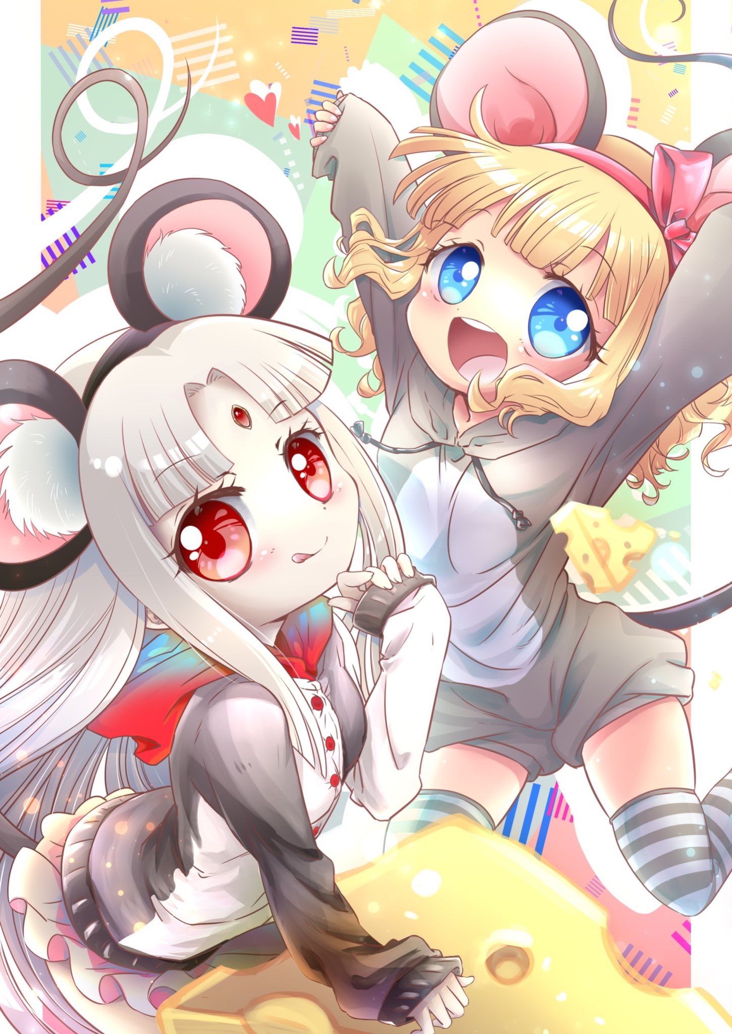 誕生日のお祝いに欲しいFAリストNo.61「十二支コスプレ:子 マリー&メリザンド」を描いて頂いたもの。二人のネズミコスがめちゃくちゃに愛らしすぎる!