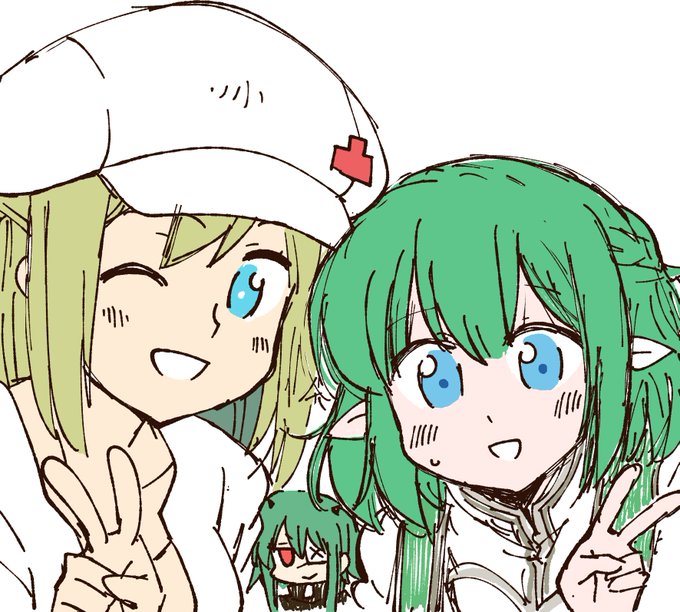 ※ムーさんのあがりちゃん ※魔王の始め方のシャルちゃん ※帰ってきた元勇者のシア の三人とのこと。緑髪仲間。