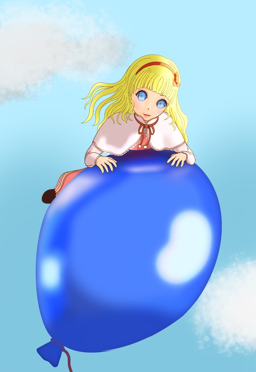 風船に乗ってふわふわと浮かぶマリー