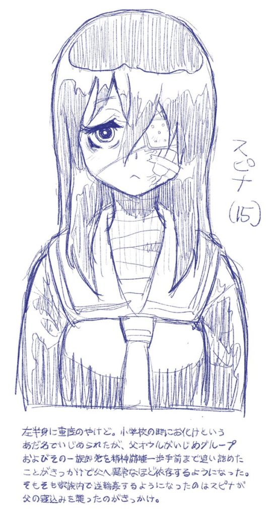 のおまけで貰ったスピナ設定。 便利な魔法とかないからやけどが残ったまま設定なの美味しい……