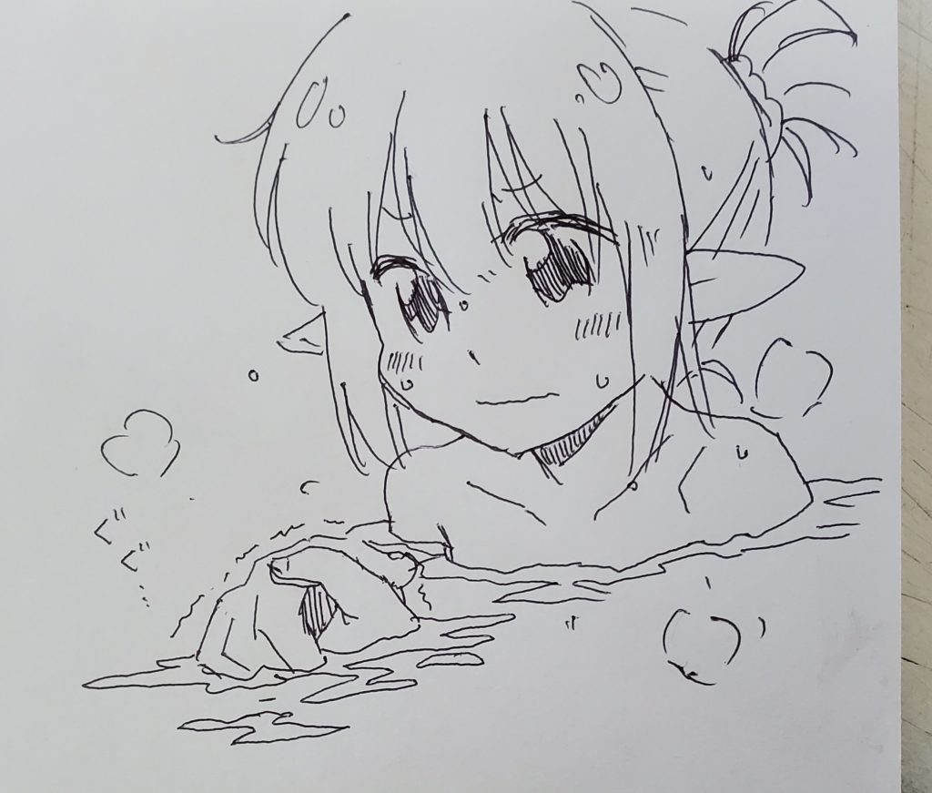 水鉄砲がうまくできない、というニシ先生の絵を、シャルで再現してもらったもの。ニシ先生のときより2倍いいねついて2倍RTされてました。