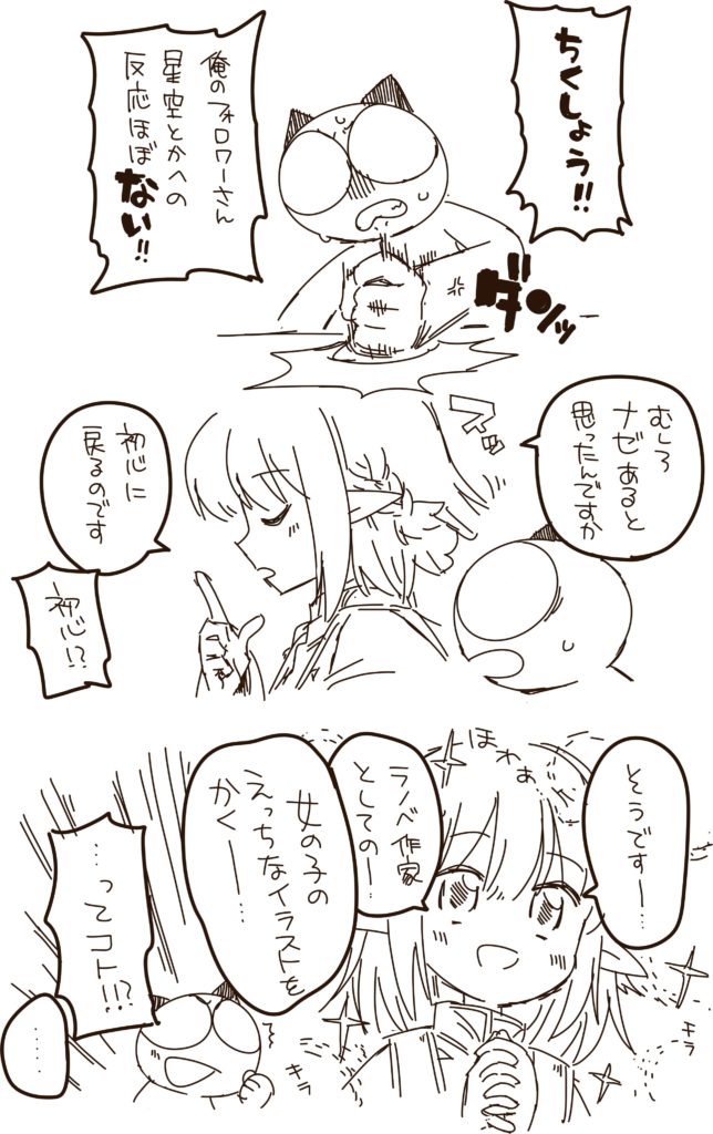 星空とかへの反応がほぼないことに対するニシ先生の怒り。 むしろナゼあると思ったんですか。本当にそれはそう。