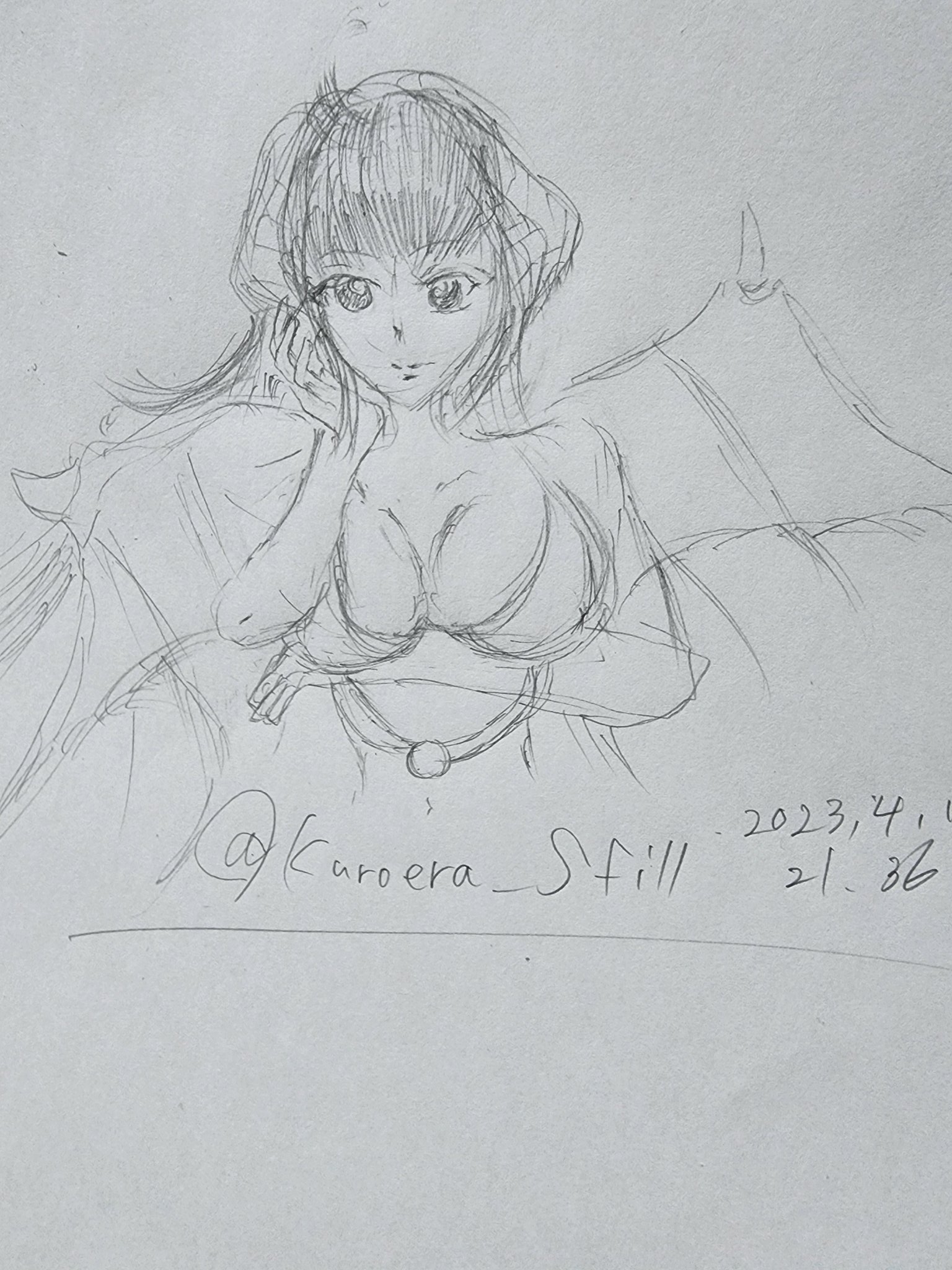 #私は存在感が薄いので気づかれない10人以上にFAおくられたら負け タグ3人目。 かつて毎日リル描いてくださっていた海月さん。腕で強調されたお胸が素晴らしい。
