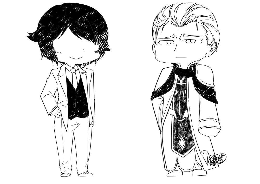 前の画像 次の画像 ヤカンとオウル #私は存在感が薄いので気づかれない10人以上にFAおくられたら負け タグ8人目。 オウルさんと「魔王の始め方オンライン」に出てきた原作者。まあこんなスーツ持ってないですけどね実際には……